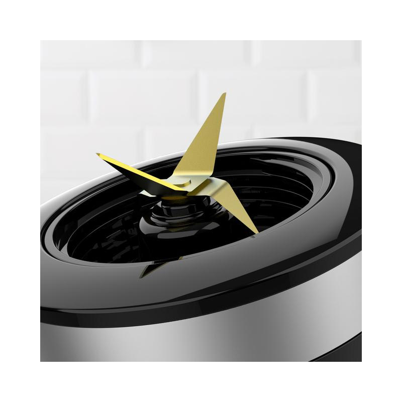 Το μπλέντερ, από την εταιρία Cecotec, είναι ικανό να αλέσει όλους τους τύπους τροφίμων και κατάλληλο για την παρασκευή χυμών και smoothies. Οι 4 λεπίδες έχουν επίστρωση μαύρου τιτανίου που διατηρεί το ατσάλι αιχμηρό για μεγαλύτερο χρονικό διάστημα, σχεδιασμένο να συνθλίβει τον πάγο και να κάνει τα smoothies λεία. Περιλαμβάνει ένα φορητό ποτήρι 600 ml για να ετοιμάσετε την τέλεια ποσότητα από τα αγαπημένα σας ποτά και να τα μεταφέρετε όπου θέλετε. Τα μη ηλεκτρικά μέρη πλένονται στο πλυντήριο πιάτων για εύκολο καθάρισμα.