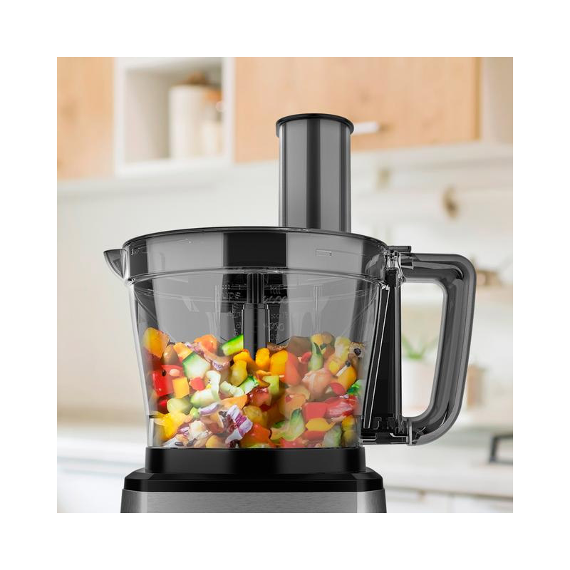 Με επιλογή 2 ταχυτήτων και ταχύτητα pulse που επιτρέπει μεγαλύτερο έλεγχο κατά την κοπή ή την ανάμειξη φαγητού, 3 δίσκους κοπής για να συνθλίψετε τα τρόφιμα ή να κόψετε πιο γρήγορα από ό,τι με ένα μαχαίρι και μπολ χωρητικότητας 3.5 Lt.