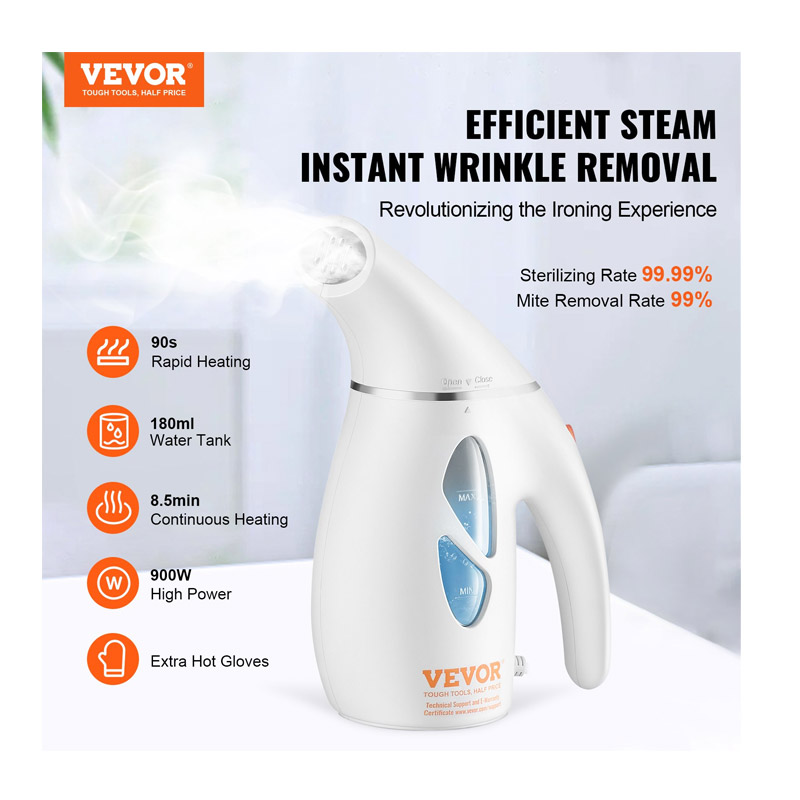 Ο ατμοκαθαριστής ρούχων χειρός, από την εταιρία VEVOR, χρησιμοποιεί αποτελεσματική τεχνολογία ατμού με ισχυρή διείσδυση ατμού, αφαιρώντας άμεσα τις ζάρες από τα ρούχα. Είτε πρόκειται για επαγγελματικό ταξίδι είτε για διακοπές, μπορεί να σας βοηθήσει να διατηρήσετε τα ρούχα σας τακτοποιημένα και χωρίς ζάρες ανά πάσα στιγμή.