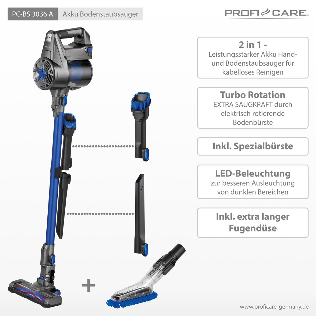 Η ProfiCare PC-BS 3036 A προσφέρει κορυφαίες επιδόσεις στον καθαρισμό χωρίς περιορισμούς από καλώδια. Με πανίσχυρη μπαταρία 22,2V Li-Ion, τεχνολογία Eco-Cyclon Twin Spin, ηλεκτρική βούρτσα με LED, και δυνατότητα μετατροπής σε σκούπα χειρός, είναι η απόλυτη λύση για ένα καθαρό και ευέλικτο σπίτι.