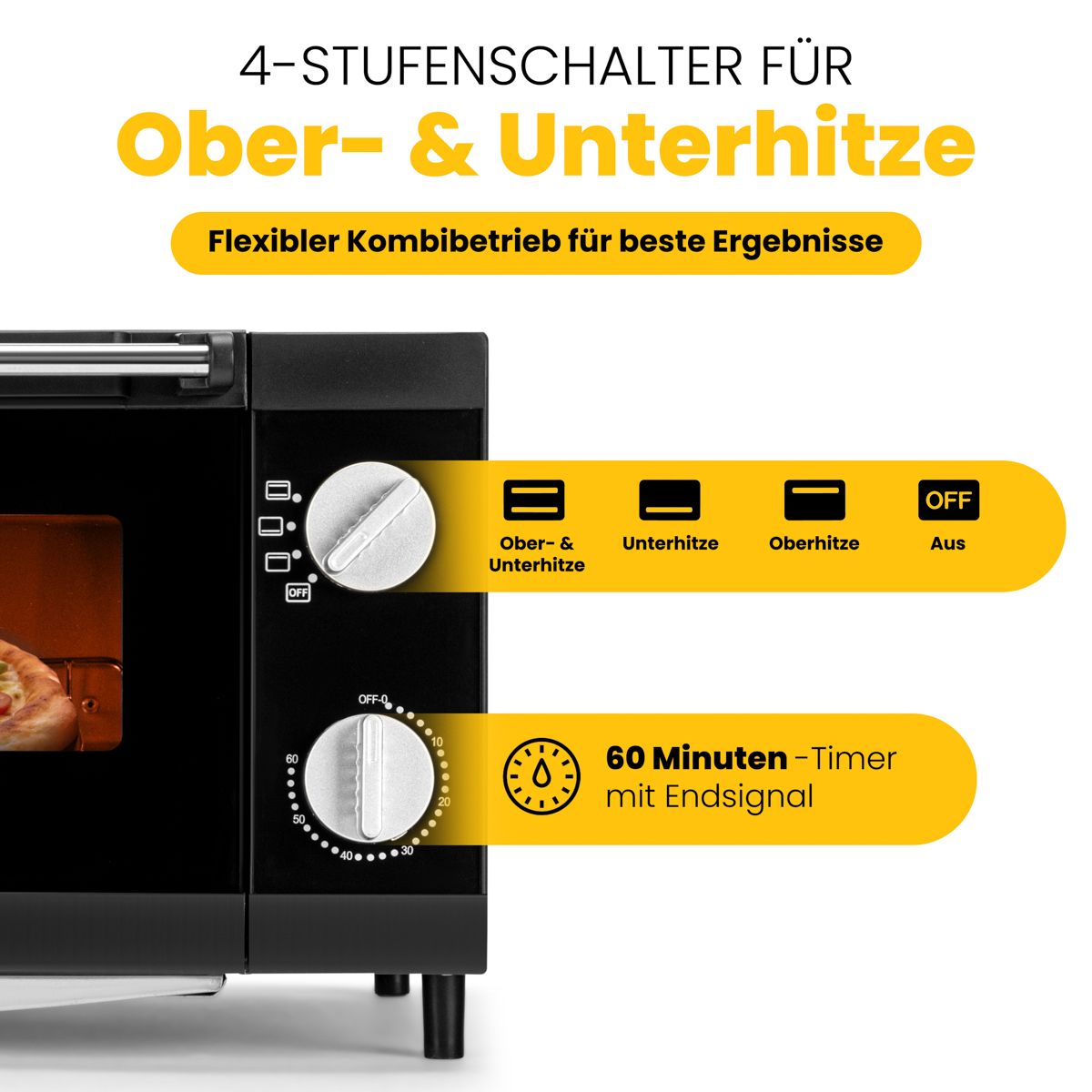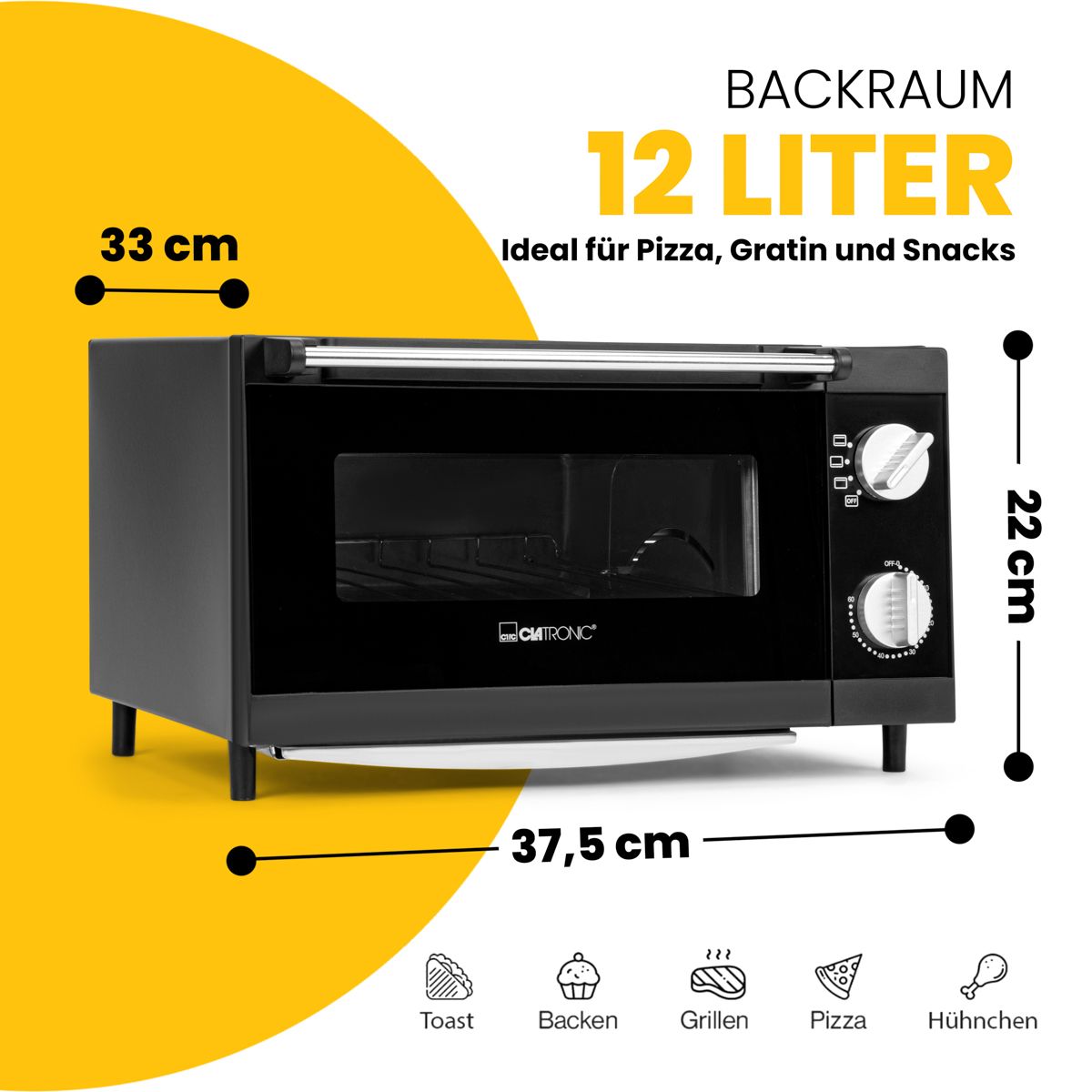 Μετατρέψτε την κουζίνα σας σε ιταλική πιτσαρία με τον mini φούρνο Clatronic 12L! Ιδανικός για ψήσιμο πίτσας, γκριλάρισμα και τοστάρισμα, διαθέτει 4 επιλογές θερμότητας και ισχυρά χαλαζιακά στοιχεία για γρήγορο και ομοιόμορφο ψήσιμο. Με χρονοδιακόπτη 60 λεπτών, προστασία από υπερθέρμανση και εύκολο καθαρισμό, προσφέρει ασφάλεια και άνεση στη χρήση.