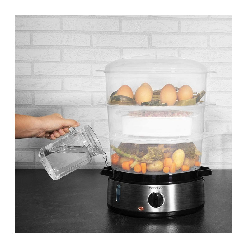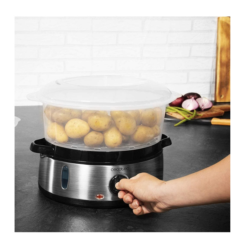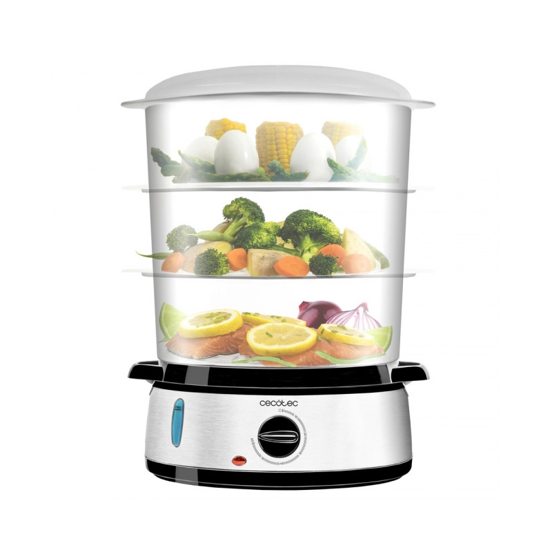Ο ατμομάγειρας, από την εταιρία Cecotec, είναι ιδανικός για γρήγορο και υγιεινό μαγείρεμα με ατμό, διατηρώντας όλα τα θρεπτικά συστατικά και τις βιταμίνες των τροφίμων. Διαθέτει ανοξείδωτο σώμα και ισχύς 800 W, καθώς και δυνατότητα μαγειρέματος μέχρι 3 πιάτα τη φορά χάρη στα 3 δοχεία του, συνολικής χωρητικότητας 9 Lt. Επιπρόσθετα, έχει μπολ για την παρασκευή ρυζιού χωρητικότητας 1 Lt. Όλα τα δοχεία του είναι φιλικά προς το περιβάλλον και απαλλαγμένα από BPA.