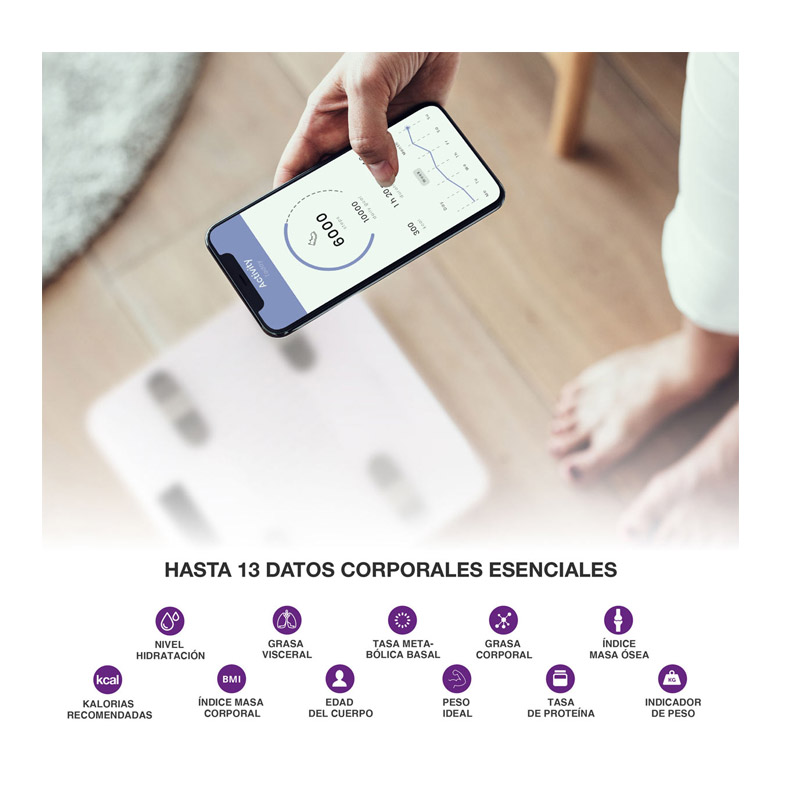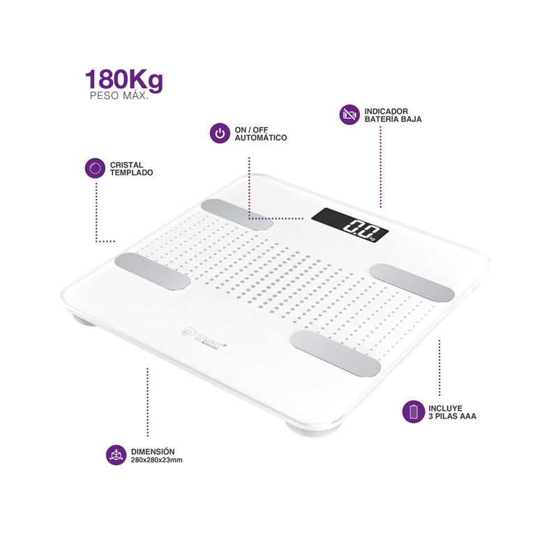 Η ζυγαριά μπάνιου - λιπομετρητής, από την εταιρία GSC, έχει επιφάνεια από σκληρυμένο γυαλί με μέγιστο βάρος τα 180 Kg. Εμφανίζει 13 βιομετρικά δεδομένα, έχει 100 g βαθμονόμηση για αυξημένη αξιοπιστία, αυτόματη ενεργοποίηση και απενεργοποίηση και λειτουργεί με 3 μπαταρίες ΑΑΑ. Είναι συμβατή με smartphone από έκδοση Android 4.0 & iOS 8.0.