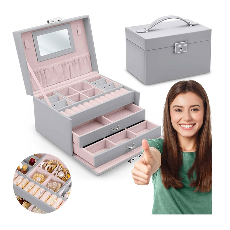Κοσμηματοθήκη - Μπιζουτιέρα 18.6 x 14.8 x 11 cm Χρώματος Γκρι Massido MS-700-Grey