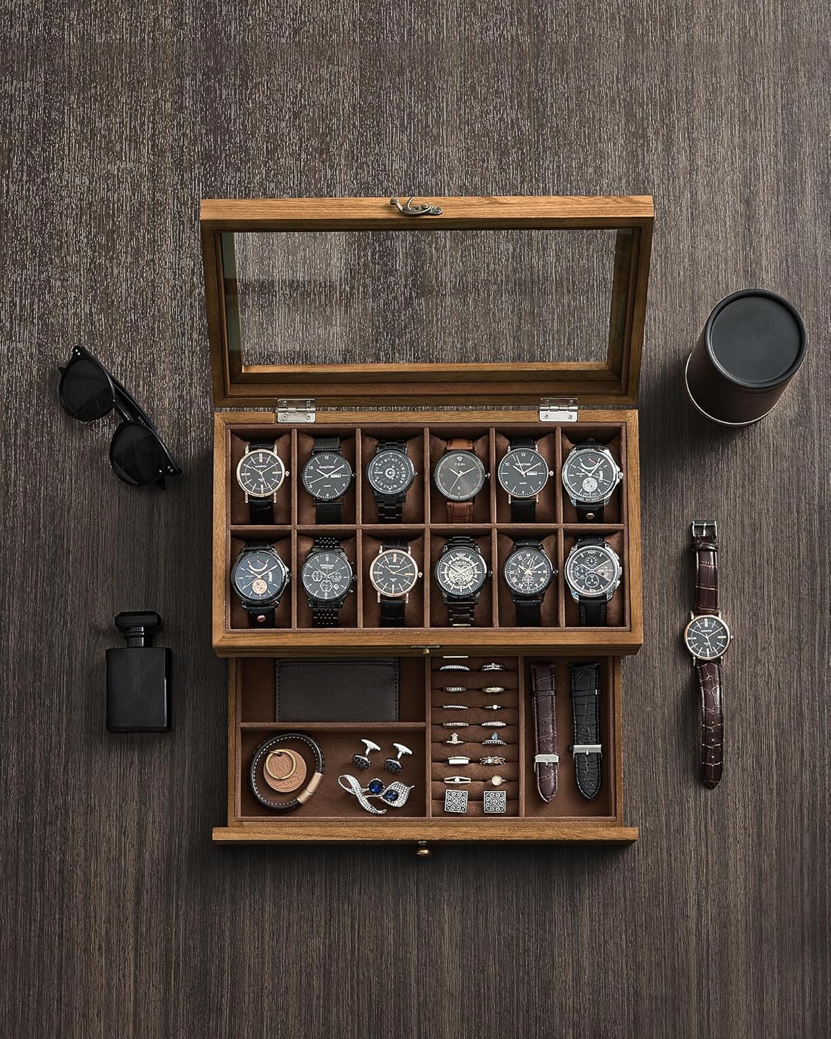 Κομψή Θήκη Ρολογιών σε Ρουστίκ Καρυδιά