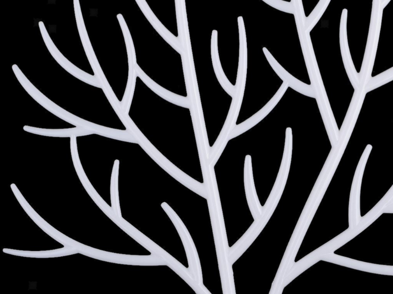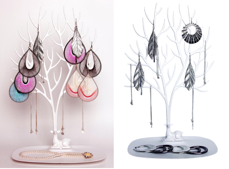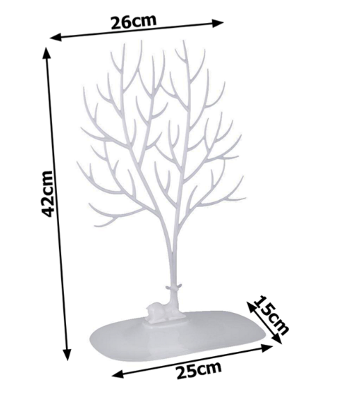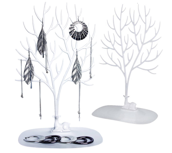 Το σταντ-δέντρο είναι εξοπλισμένο με μια ευρύχωρη βάση στην οποία μπορούμε να αποθηκεύσουμε μικρά καλλυντικά, στολίδια μαλλιών και άλλα μικρά αξεσουάρ.