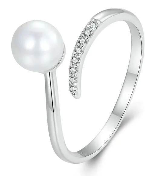 BAMOER δαχτυλίδι BSR497-E με πέρλα & ζιρκόνια, ανοιγόμενο, ασήμι 925