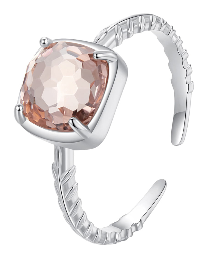 BAMOER δαχτυλίδι BSR598-E με ροζ διάφανο κρύσταλλο, ανοιγόμενο, ασήμι 925, ασημί