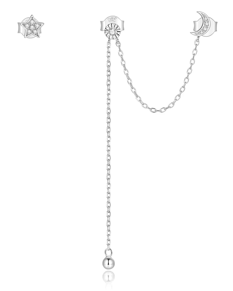 Μοντέρνα σκουλαρίκια καρφωτά Bamoer σε σχέδιο φεγγάρι και αστέρι, κατασκευασμένα από ασήμι 925 και διακοσμημένα με αστραφτερή κυβική ζιρκόνια.