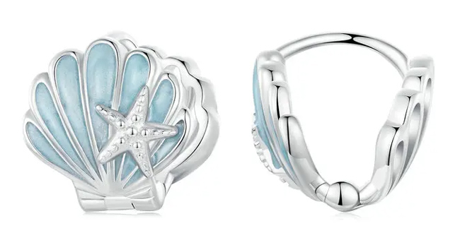 BAMOER σκουλαρίκια κρίκοι BSE1011 σε σχήμα κοχύλι, ασήμι 925, ασημί/μπλε