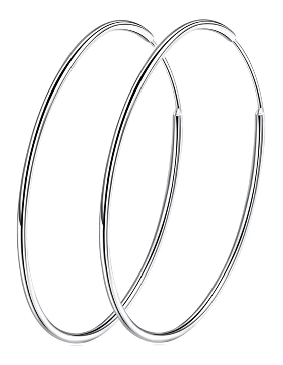 Μοντέρνα σκουλαρίκια κρίκοι Bamoer, κατασκευασμένα από ασήμι 925, σε ασημί χρώμα.