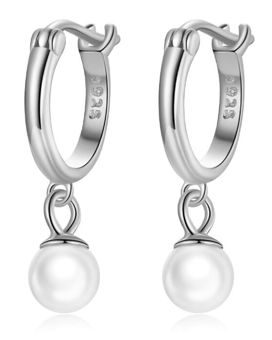 Σκουλαρίκια κρίκος Bamoer κατασκευασμένα από ασήμι 925, επιπλατινωμένα, διακοσμημένα με διακριτικές και κομψές πέρλες λευκού χρώματος.