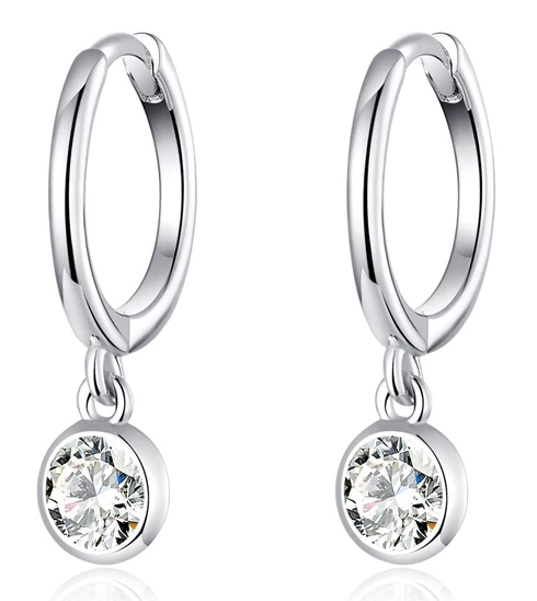 Σκουλαρίκια κρίκος Bamoer κατασκευασμένα από ασήμι 925, επιπλατινωμένα, διακοσμημένα με αστραφτερή κυβική ζιρκόνια, ημιδιαφανούς λευκού χρώματος.