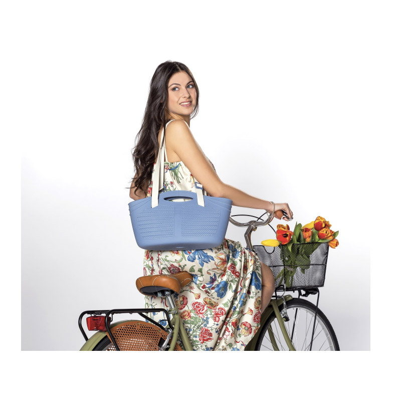 Η τσάντα για ψώνια, από την εταιρία Bama, είναι κατασκευασμένη από μαλακό και ανθεκτικό πλαστικό. Είναι αδιάβροχη, μπορεί να πλυθεί εύκολα με νερό και ουδέτερο σαπούνι και είναι εξοπλισμένη με ρυθμιζόμενους ιμάντες που επιτρέπουν άνετη χρήση κατά τη διάρκεια των αγορών, του περπατήματος και κάθε άλλη περίσταση.