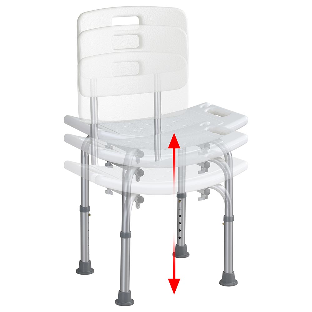BAKAJI Κάθισμα ντους με ρυθμιζόμενο ύψος πλάτης καρέκλα σκαμπό μπανιέρας ηλικιωμένων 02837459