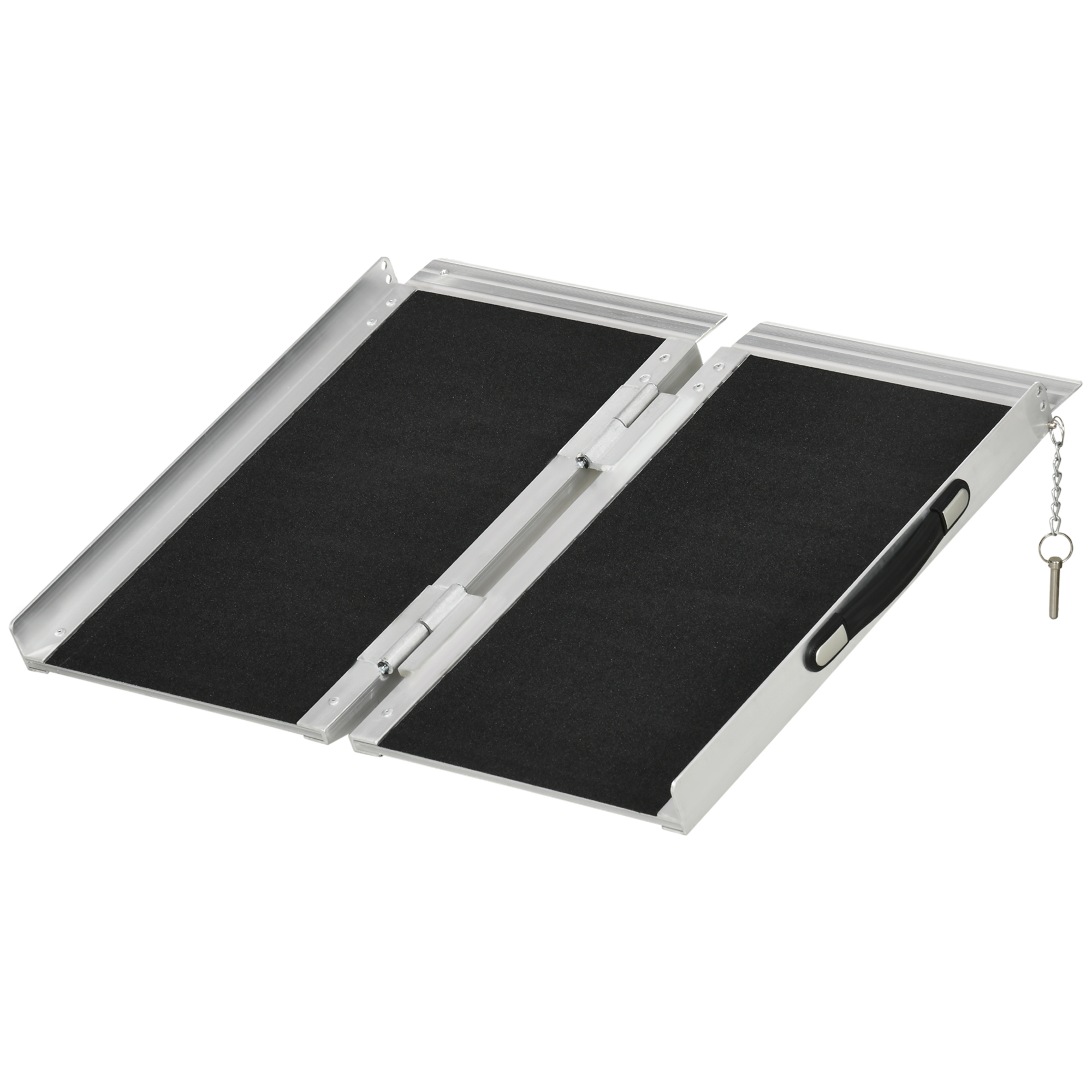 HOMCOM Πτυσσόμενη ράμπα αναπηρικού αμαξιδίου με πλευρικούς οδηγούς, κράμα αλουμινίου, 61x72 cm, ασημί και μαύρο 713-019V00SR