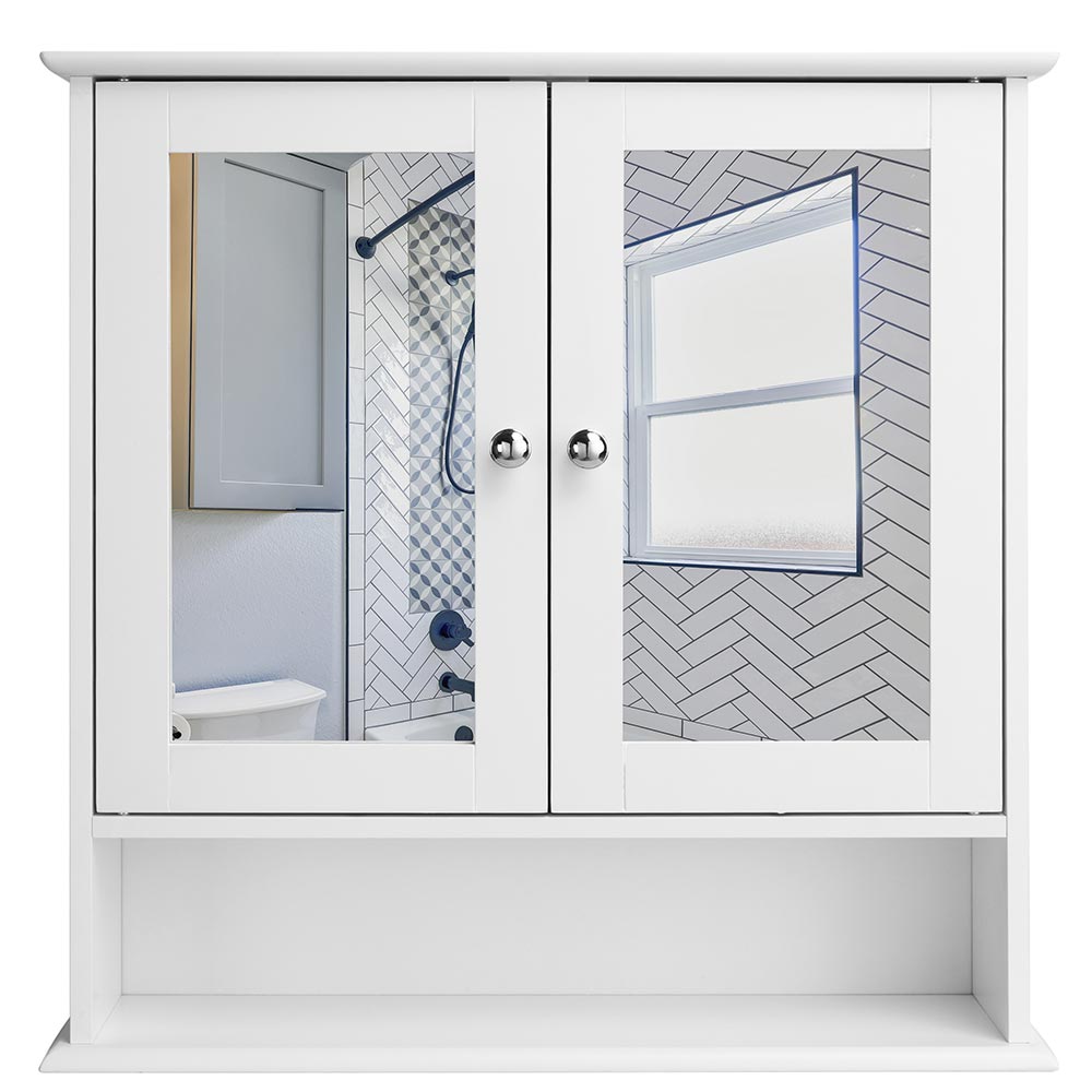 - 1 x Κρεμαστό Ντουλάπι Καθρέφτης Τοίχου Μπάνιου με Καθρέφτη Ξύλο 2 Πόρτες