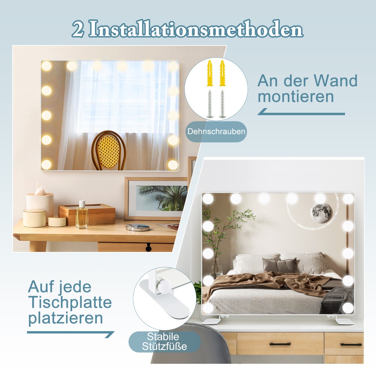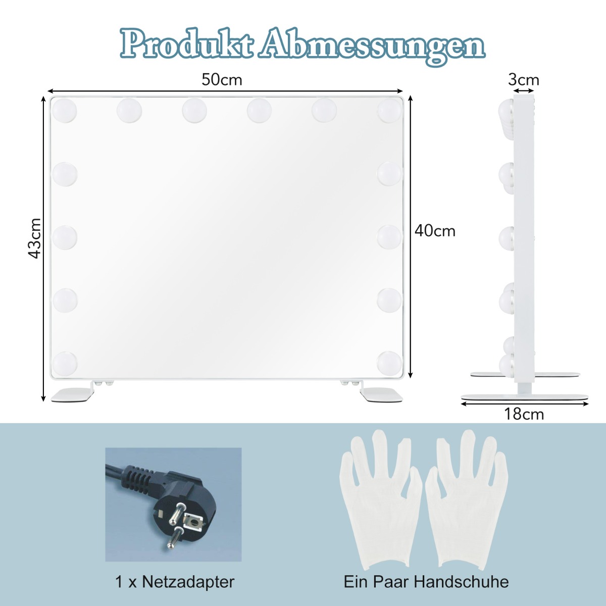 - 3 λειτουργίες φωτισμού & ρυθμιζόμενη φωτεινότητα: Ο καθρέφτης διαθέτει 14 ρυθμιζόμενα φώτα με 3 λειτουργίες φωτισμού (λευκό φως 6500K, φυσικό φως 4500K και κίτρινο φως 3000K).