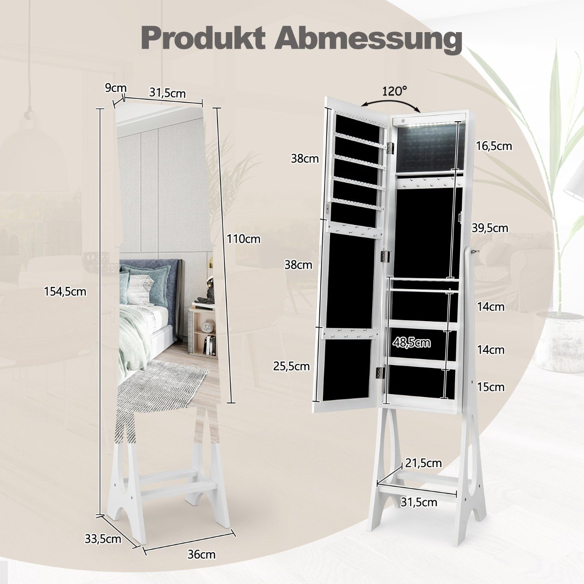 Costway Οργανωτής Κοσμημάτων με Ολόσωμο Καθρέφτη και LED Φωτισμό JV10081WH