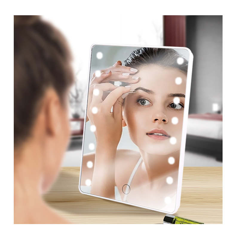 Ο καθρέπτης μακιγιάζ, από την εταιρία GEM, διαθέτει περιστρεφόμενη πίσω στήριξη 180° και 16 LED φωτάκια περιμετρικά, τα οποία βοηθούν στην ανάδειξη και τον φωτισμό του προσώπου, έτσι ώστε το μακιγιάζ να γίνεται χωρίς να ξεφεύγει καμία λεπτομέρεια. Η φωτεινότητα ρυθμίζεται με το κουμπάκι αφής που φέρει στο κάτω μέρος.