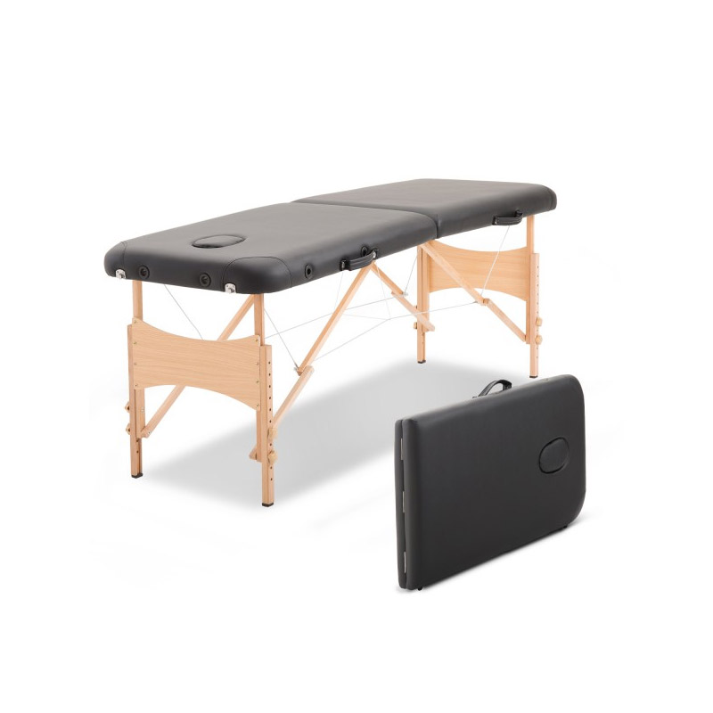 Φορητό Ξύλινο Αναδιπλούμενο Επαγγελματικό Κρεβάτι - Κλίνη Μασάζ Φυσικοθεραπείας 2 Ζωνών Χρώματος Μαύρο HOMCOM 5550-3291