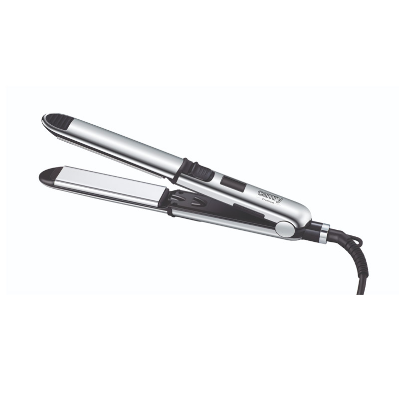 Η ισιωτική μαλλιών, από την εταιρία Camry, είναι κατασκευασμένη από υλικά υψηλής ποιότητας. Με περίβλημα από ανοξείδωτο ατσάλι για μακροχρόνια χρήση, ρυθμιζόμενη θερμοκρασία 6 επιπέδων από 130 – 220 ° C και ψηφιακή οθόνη LCD σε κεντρικό σημείο που σας επιτρέπει να παρακολουθείτε την εργασία της συσκευής. Έχει γρήγορη θέρμανση σε 40 sec, πλωτές πλάκες τιτανίου, αυτόματη απενεργοποίηση μετά από 60 λεπτά, περιστρεφόμενο κορδόνι 360 °, διακόπτη κλειδώματος / ξεκλειδώματος και βρόγχο για να κρεμιέται.