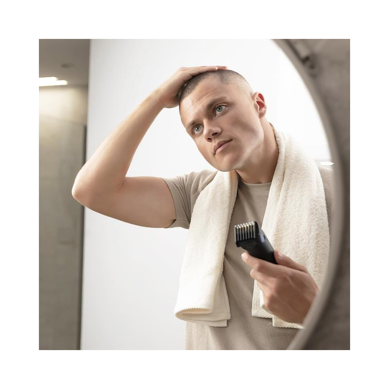Με την κουρευτική μηχανή θα έχετε το επιθυμητό αποτέλεσμα που θέλετε, με ακρίβεια, γρήγορα και εύκολα. Διαθέτει μεγάλη ευελιξία μήκους κοπής, χάρη στο λεβιέ στο πλαϊνό μέρος. Μπορείτε να ρυθμίσετε το μήκος κοπής πολύ εύκολα, απλά μετακινώντας τον λεβιέ στο πλάι της μηχανής και τοποθετώντας ή αφαιρώντας τα χτενάκια στην κεφαλή. Επιπλέον διαθέτει οθόνη LED η οποία δείχνει το χρόνο λειτουργίας, το ποσοστό φόρτισης και την ενεργοποίηση της λειτουργίας κλειδώματος.