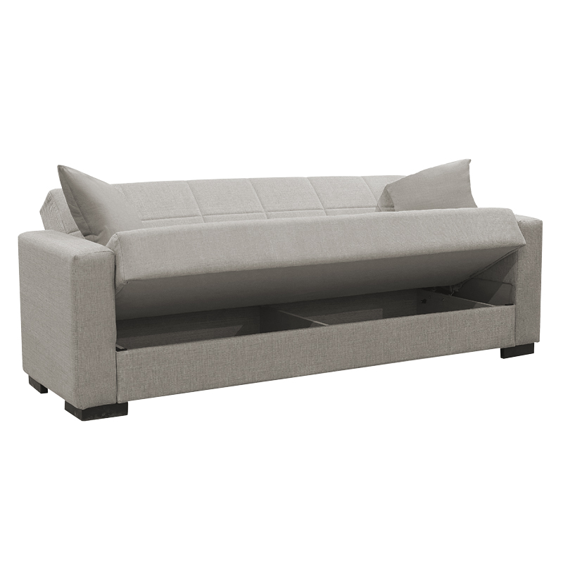 Καναπές-κρεβάτι με αποθηκευτικό χώρο τριθέσιος Vox pakoworld ανοιχτό γκρι ύφασμα 214x82x83εκ