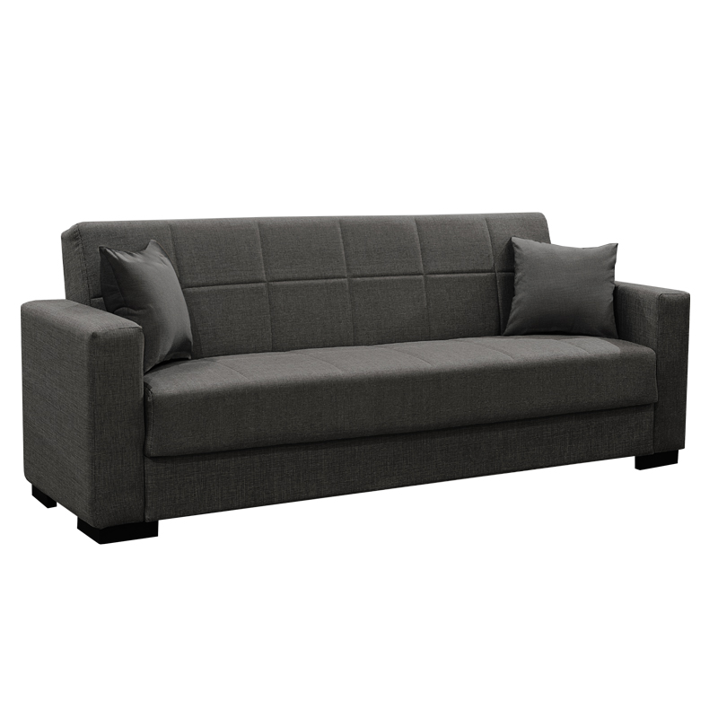 Καναπές-κρεβάτι με αποθηκευτικό χώρο τριθέσιος Vox pakoworld ανθρακί ύφασμα 214x82x83εκ