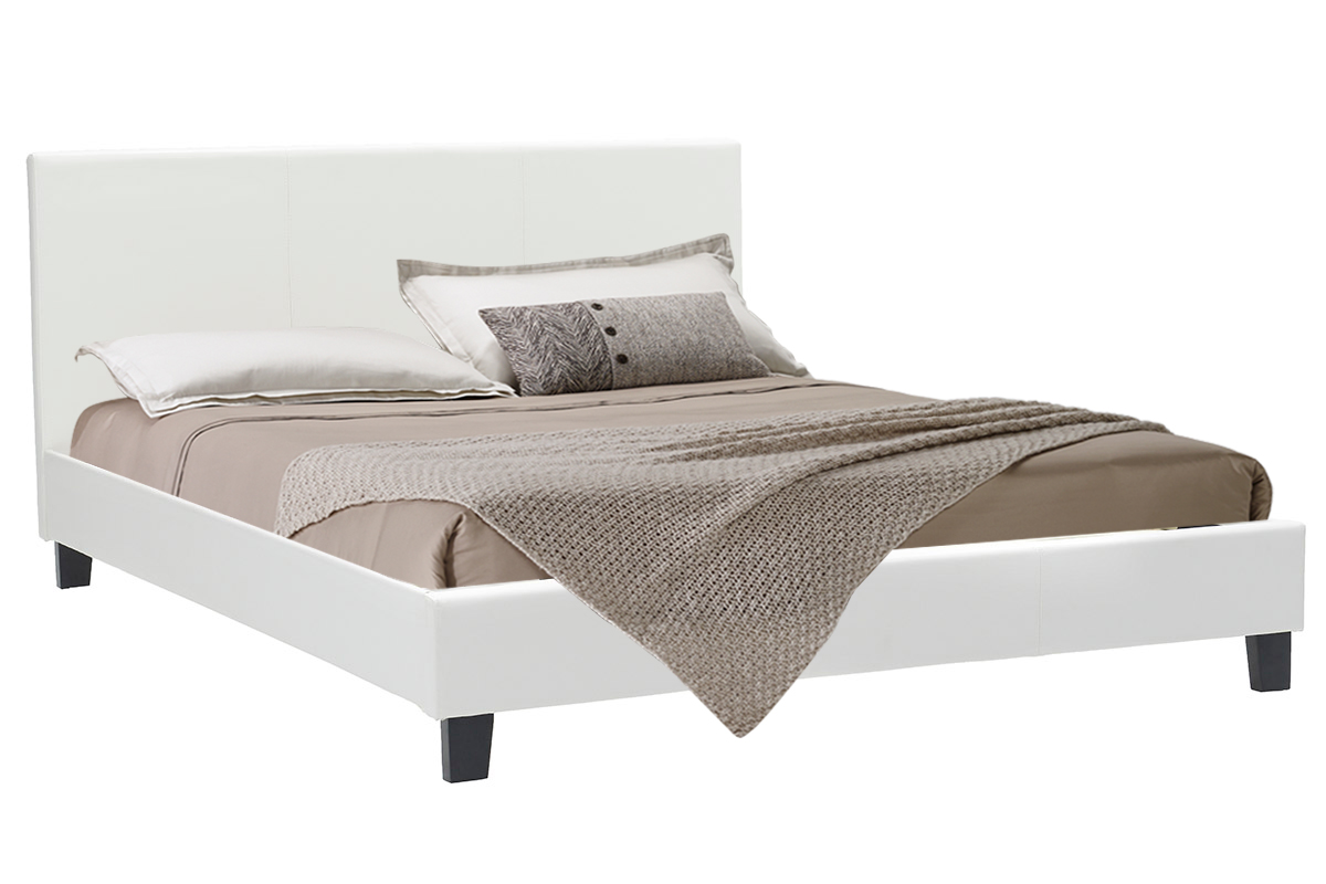 Κρεβάτι Nevil pakoworld διπλό 150x200 PU χρώμα λευκό ματ