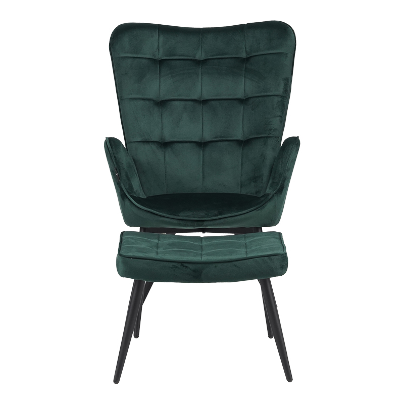 Πολυθρόνα με υποπόδιο Dorita pakoworld βελούδο κυπαρισσί-πόδι μαύρο μέταλλο 68.5x76x103εκ