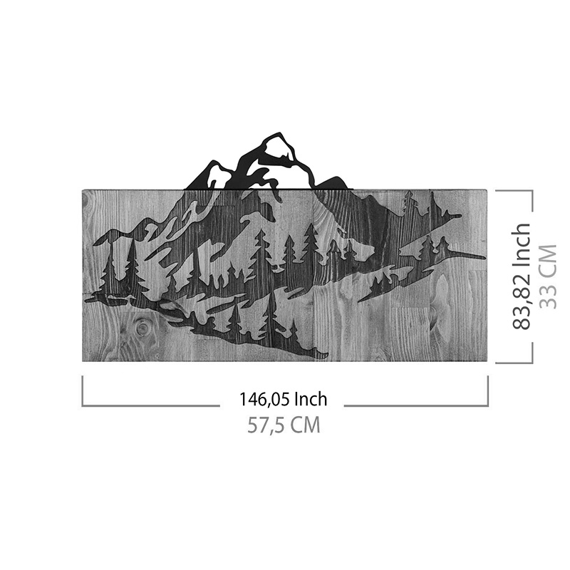 - Κατασκευασμένο από ξύλο πεύκου υψηλής ποιότητας (3mm) με το σχέδιο των βουνών να είναι κατασκευασμένο από μέταλλο σε μαύρο χρώμα (1,5mm).