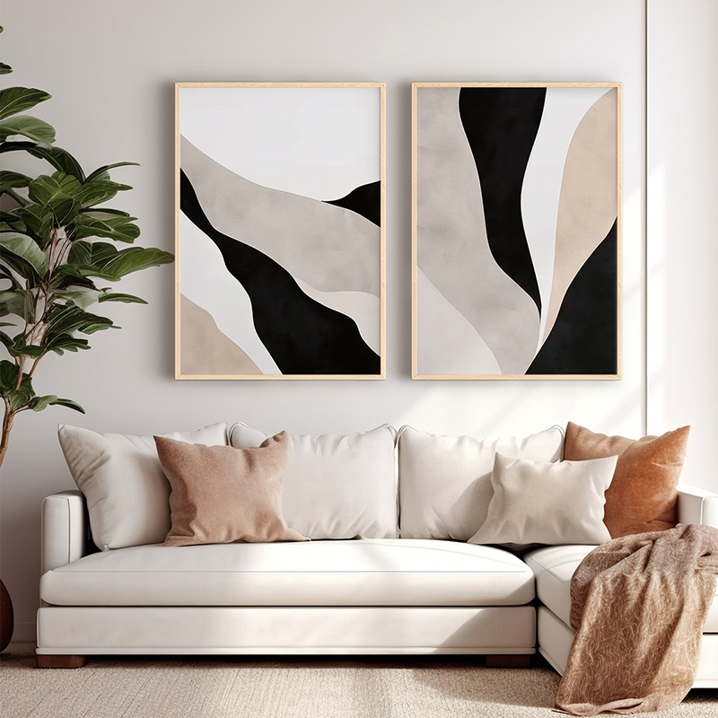 Εισάγετε στον χώρο σας την εκλεπτυσμένη κίνηση και τη διακριτική αντίθεση που χαρακτηρίζει τη σύγχρονη αφηρημένη τέχνη. Το δίπτυχο Manua αναπαριστά δυναμικές, κυματιστές γραμμές και σχήματα σε επάλληλα επίπεδα, δημιουργώντας μια αίσθηση ροής και ελαφρότητας. Η επιλογή της λιτής, ουδέτερης παλέτας προσδίδει μοντέρνα κομψότητα και ταιριάζει απόλυτα σε Minimal και Boho χώρους.