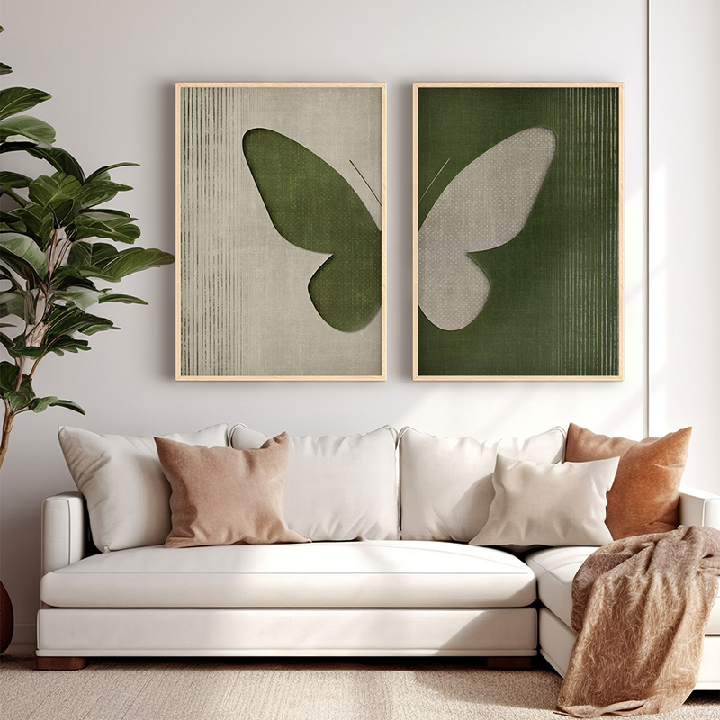 Αφήστε την ανάλαφρη αίσθηση της μεταμόρφωσης και την ηρεμία του πράσινου να γεμίσει τον χώρο σας. Το δίπτυχο Obsten δεν είναι απλώς διακόσμηση, είναι μία αισθητική δήλωση που αναπαριστά τα φτερά μιας πεταλούδας ή τα φύλλα ενός φυτού, τονίζοντας την οργανική ομορφιά και την ισορροπία. Κάθε φορά που το βλέμμα σας εστιάζει στις απλές, γεωμετρικές γραμμές και το πλούσιο πράσινο, νιώθετε μια αίσθηση ελευθερίας, γαλήνης και σύνδεσης με τη φύση. Το έργο συμβολίζει την ανανέωση, την πρόοδο και τη διακριτική γοητεία του μινιμαλισμού. Είναι η οπτική υπενθύμιση ότι η πολυτέλεια βρίσκεται στην καθαρότητα της φόρμας.