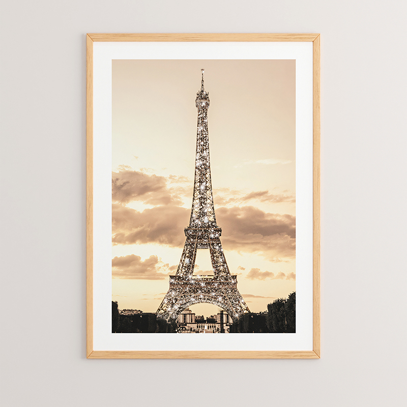 Αφεθείτε στη μαγεία του Παρισιού με αυτόν τον πίνακα που απεικονίζει τον εμβληματικό Πύργο του Άιφελ. Η φωτογραφία, με τους απαλούς, ζεστούς της τόνους, αποτυπώνει την διαχρονική κομψότητα του μνημείου, προσθέτοντας μια ρομαντική και κομψή νότα στον χώρο σας.