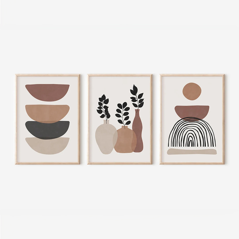 Δώστε στον χώρο σας ένα έργο που συνδυάζει την αίσθηση του κεραμικού με τη λιτότητα της αφηρημένης τέχνης, σε μία ζεστή και διακριτική παλέτα. Το τρίπτυχο Yenia είναι μία αισθητική δήλωση που αποτελείται από τρία ξεχωριστά, αλληλεπιδρώντα τεμάχια. Κάθε πίνακας παρουσιάζει μία σύνθεση από αφηρημένες και λεπτές, γραμμικές απεικονίσεις φυτών σε βάζα. Προσδίδουν ένα σύγχρονο και μοντέρνο χαρακτήρα στον χώρο.