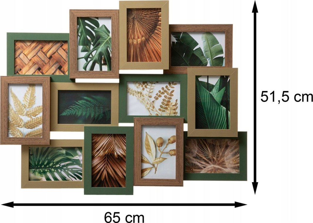 Οι διαστάσεις της πολυκορνίζας για φωτογραφίες JULIA είναι 65 x 51,5 εκατοστά, επιτρέποντας την εντυπωσιακή κάλυψη μεγαλύτερων επιφανειών τοίχου. Το προϊόν ταιριάζει απόλυτα σε εσωτερικούς χώρους με στυλ ζούγκλας ή μοντέρνο. Η πολυκορνίζα για φωτογραφίες JULIA είναι επίσης μια εξαιρετική ιδέα για πρωτότυπο δώρο.