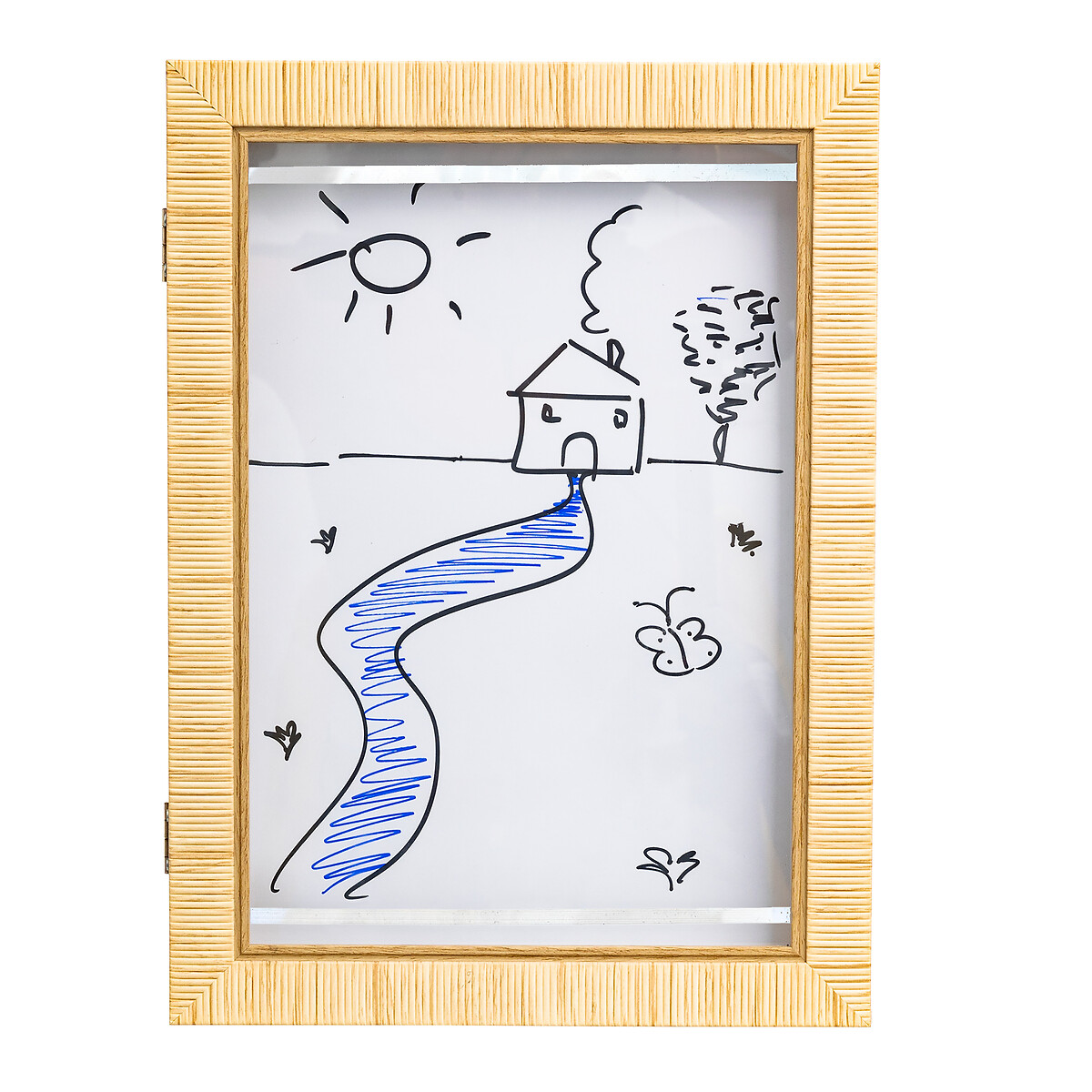 Ιδανική για το βρεφικό ή παιδικό δωμάτιο, η διακοσμητική κορνίζα δίνει ζωή στις ζωγραφιές του παιδιού σας. Κατασκευασμένη από υψηλής ποιότητας ξύλο MDF_E1 σε μοντέρνο μπεζ χρώμα, μπορεί να προσαρμοστεί σε οποιοδήποτε χώρο, κρεμασμένη στον τοίχο ή τοποθετημένη σε επιφάνεια, κάθετα ή οριζόντια. Με χωρητικότητα για πάνω από 100 σχέδια και δύο λαστιχάκια για σίγουρη στήριξη, εξασφαλίζει ότι οι δημιουργίες του παιδιού σας παραμένουν ασφαλείς και εντυπωσιακές. Το μαγνητικό μπροστινό άνοιγμα επιτρέπει εύκολη πρόσβαση, κάνοντας την αλλαγή των ζωγραφιών μια απλή υπόθεση.