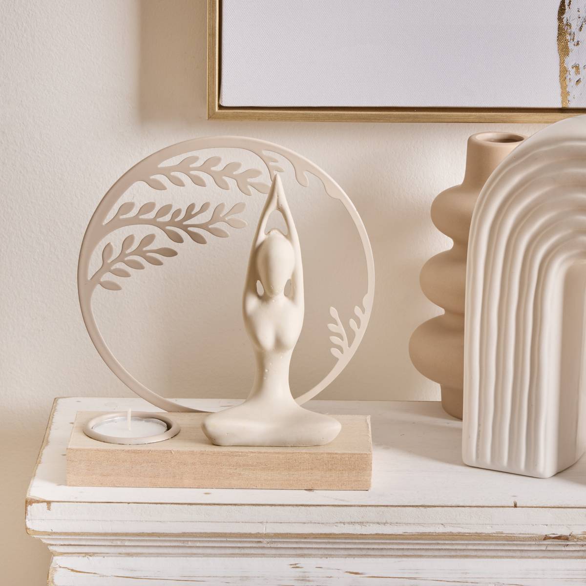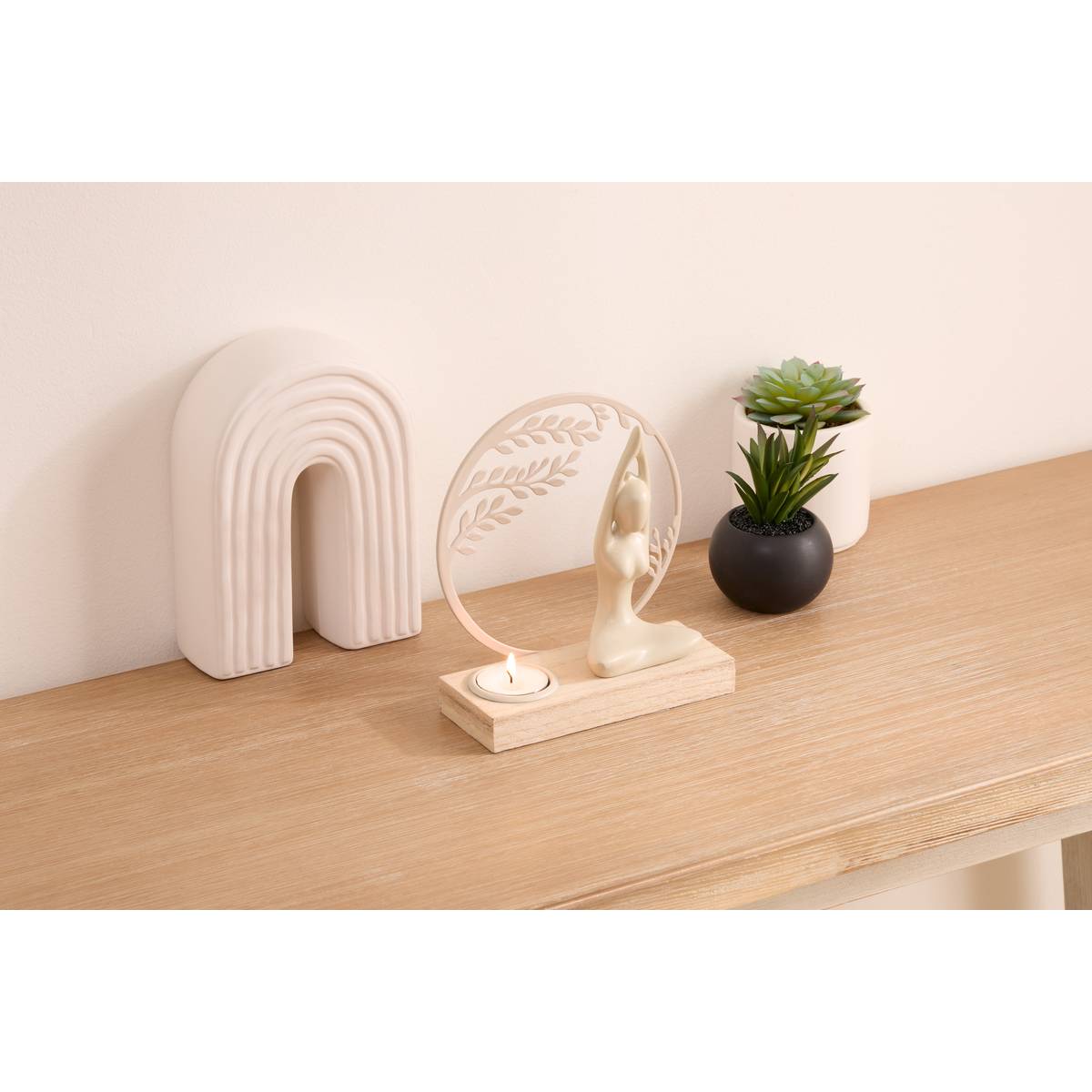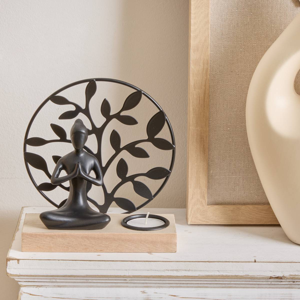 Ιδανικό για τη δημιουργία μιας κομψής και ζεν ατμόσφαιρας σε εσωτερικούς χώρους, το σετ Yogi Atmosphera θα προσθέσει μια αρμονική πινελιά στο περιβάλλον σας. Αποτελείται από ένα αγαλματίδιο από χυτοσίδηρο με εξωτική έμπνευση, κατασκευασμένο σε κομψό στυλ. Είναι τοποθετημένο σε μια ξύλινη βάση που περιέχει μια θέση για κερί τύπου ρεσώ. Τοποθετήστε αυτό το σετ σε μια κονσόλα εισόδου για να απολαύσετε μια θετική και χαλαρωτική ατμόσφαιρα.