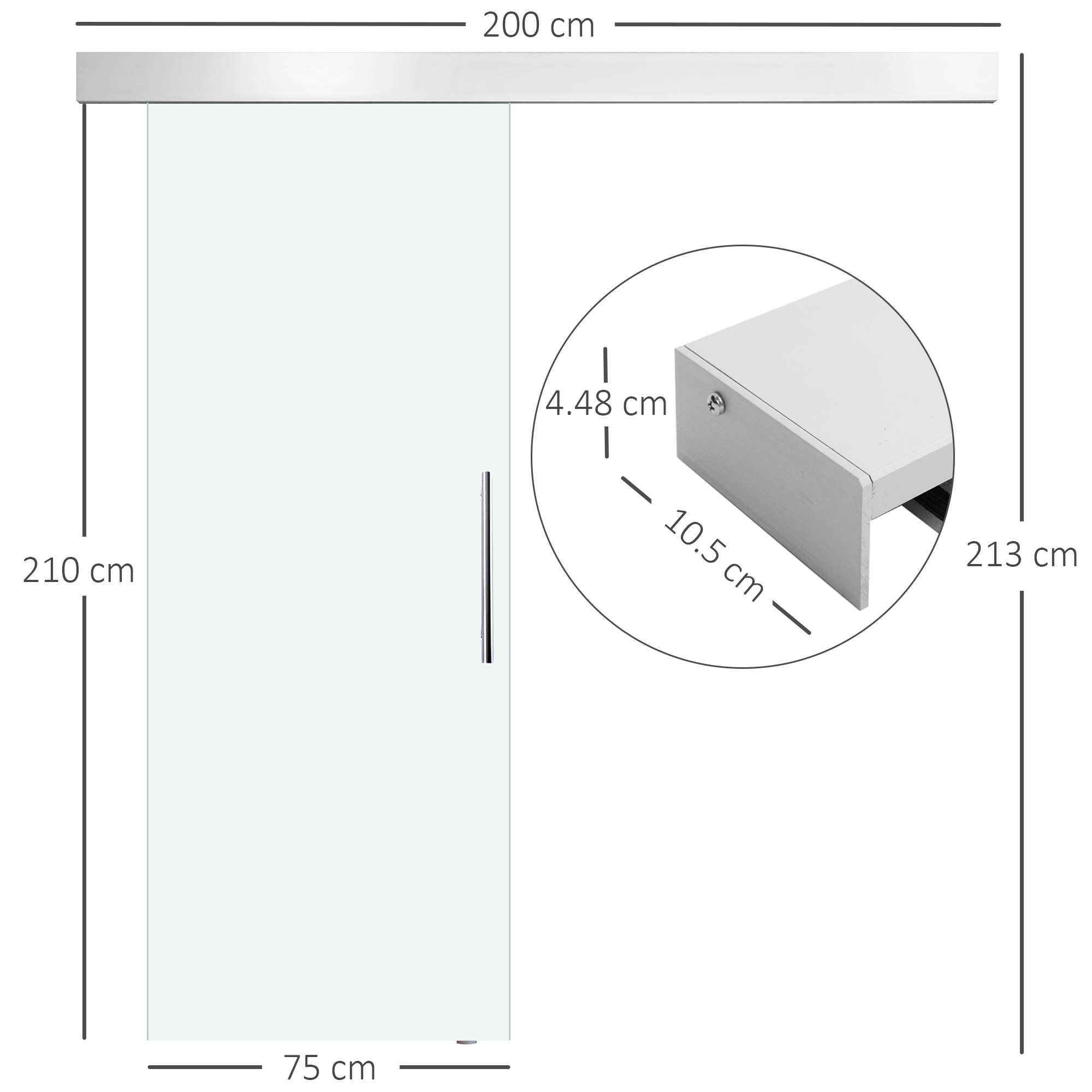 Διαφανής Γυάλινη Συρόμενη Πόρτα με Σετ Ράγα και Λαβή Αλουμινίου 210x75x0,8cm B70-042 HOMCOM