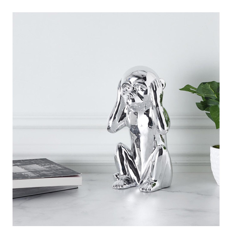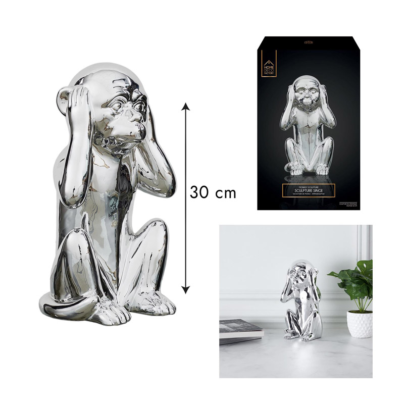 Διακοσμητική Μαϊμού από Δολομίτη 17 x 15 x 28 cm Χρώματος Ασημί Home Deco Factory HD0007