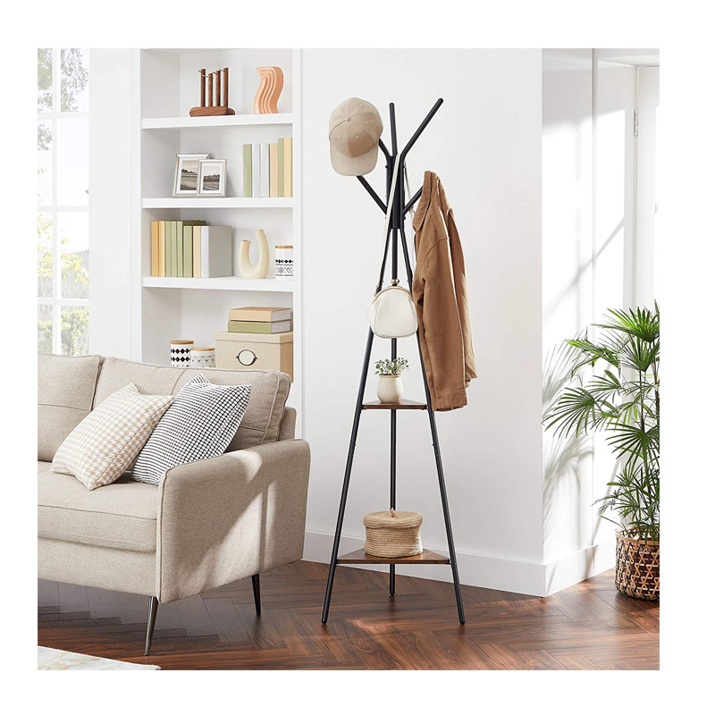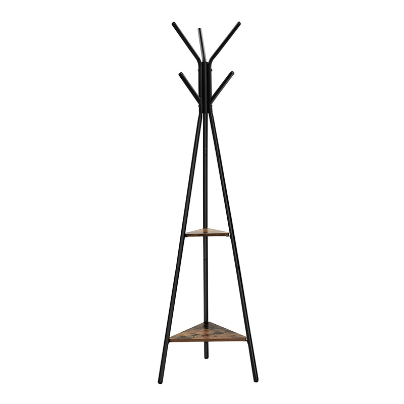 Ο καλόγερος, από την εταιρεία VASAGLE, έχει μεταλλικό σκελετό από ατσάλι με βιομηχανικό σχεδιασμό. Διαθέτει 2 ξύλινα ράφια από μοριοσανίδα με vintage εμφάνιση και μέγιστο βάρος 10 Kg το καθένα, γάντζους με στρογγυλεμένα άκρα για να προστατεύουν τα ρούχα από ζημιές και τριγωνική βάση για πρόσθετη σταθερότητα.