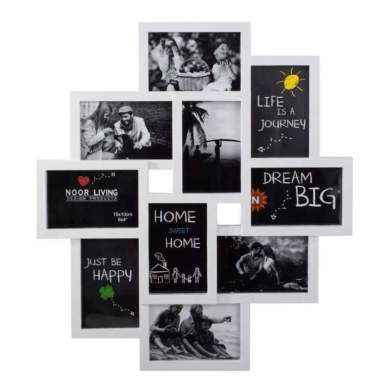 Η κορνίζα, από την εταιρία Verk Group, έχει πλαίσιο κατασκευασμένο από πλαστικό - δεν υπάρχει γυαλί , το οποίο έχει αντικατασταθεί από μια μεμβράνη, οπότε δεν χρειάζεται να ανησυχείτε μήπως σπάσει αν πέσει. Έχει 10 θέσεις για να τοποθετήσετε τις αγαπημένες σας φωτογραφίες. Με κομψό σχεδιασμό, θα ταιριάξει σε κάθε δωμάτιο του σπιτιού σας.