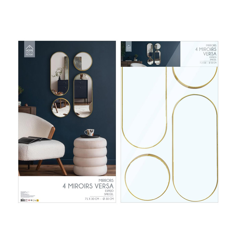 Το σετ, από την εταιρία Home Deco Factory, αποτελείται από 4 καθρέπτες - 2 στρογγυλοί και 2 οβάλ - ιδανικοί για την διακόσμηση του σπιτιού σας.