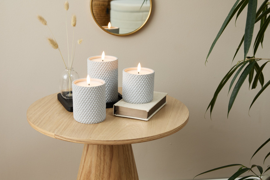 Δώστε στον χώρο σας μια ζεστή και ατμοσφαιρική λάμψη με αυτό το σετ τριών LED κεριών σε κομψή τσιμεντένια βάση, σε ανοιχτό γκρι χρώμα με μοναδικό σχέδιο καλωδίου. Χωρίς φλόγα, αυτά τα κεριά δημιουργούν ένα ρεαλιστικό εφέ φωτισμού, προσφέροντας μια χαλαρωτική και φιλόξενη ατμόσφαιρα.