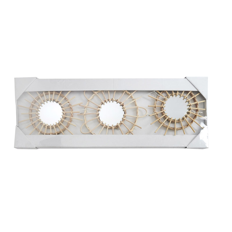 Σετ Στρογγυλοί Καθρέπτες Τοίχου με Πλαίσιο Μπαμπού 28 cm 3 τμχ Home Deco Factory HD4363