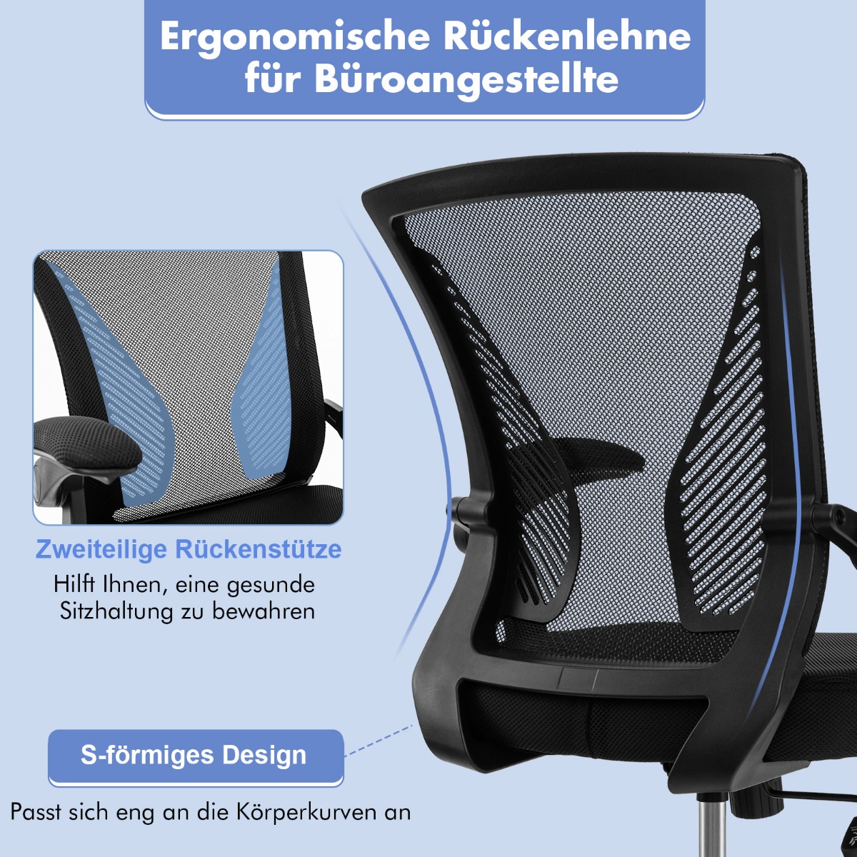 Costway Κάθισμα γραφείου εργονομικό με αναδιπλούμενα μπράτσα, καρέκλα γραφείου με μεσαία πλάτη 57 x 63 x 90–100 cm μαύρο. CB10617DK