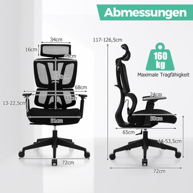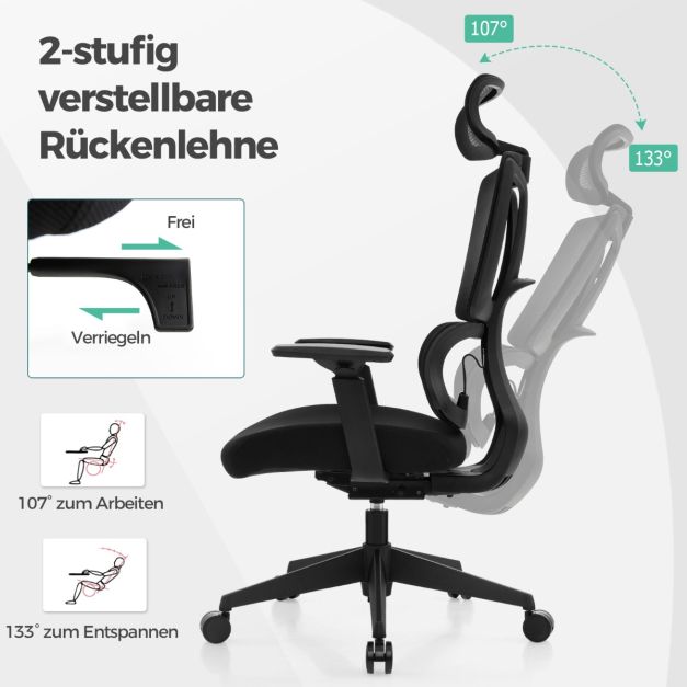 Για να καλύψει τις ατομικές σας ανάγκες, η εργονομική καρέκλα από την εταιρεία Costway προσφέρει ρυθμιζόμενο ύψος από 117 έως 126,5 cm και περιστρεφόμενο κάθισμα 360°, διευκολύνοντας την πρόσβαση σε αντικείμενα προς όλες τις κατευθύνσεις .Το εργονομικό σχέδιο περιλαμβάνει δύο κλίσεις στην πλάτη (107° και 133°), επιτρέποντας την εύκολη εναλλαγή μεταξύ εργασίας και χαλάρωσης.