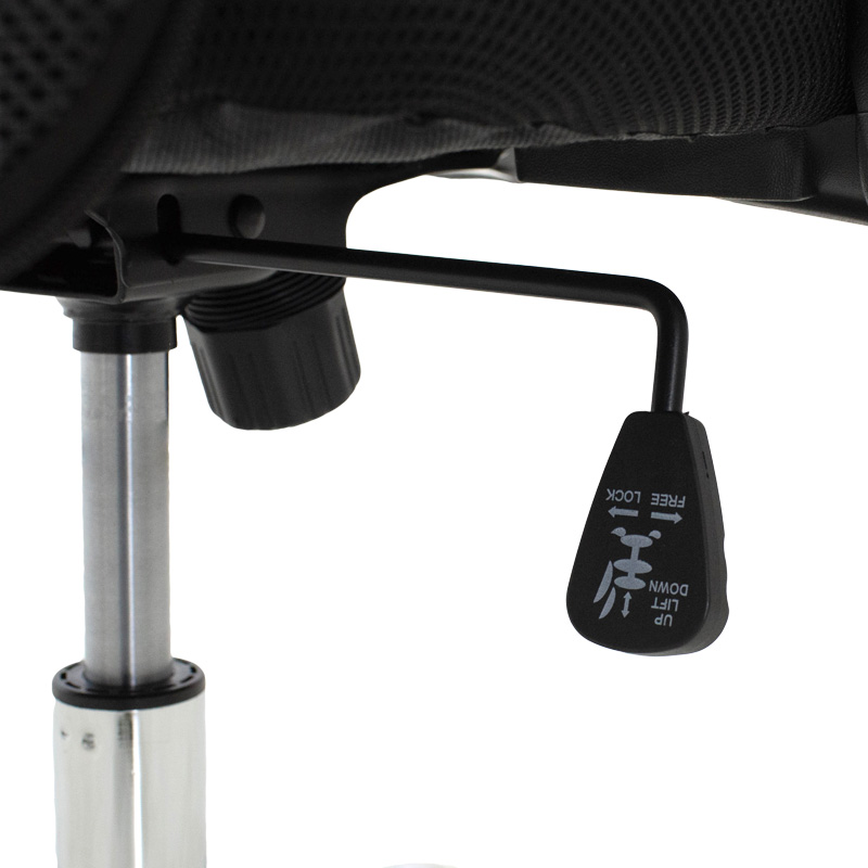 - Ανθεκτικός σκελετός: Με έδραση σε 5ντακτινωτή τροχήλατη βάση χρωμίου υψηλών αντοχών.