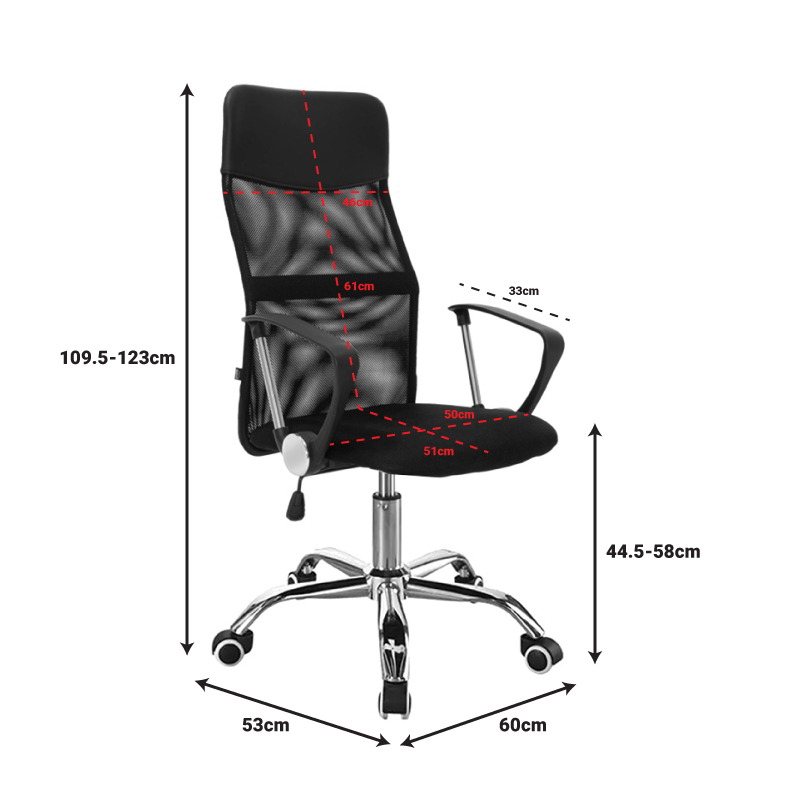 - Η πλάτη είναι επενδυμένη με ειδικό ανθεκτικό διάτρητο δίχτυ/ύφασμα και η έδρα με ύφασμα Mesh που επιτρέπει την κυκλοφορία του αέρα και αποτρέπει την εφίδρωση του σώματος
